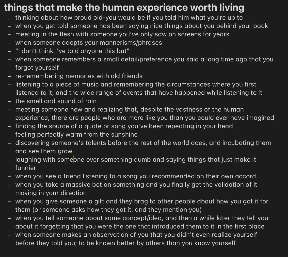i wrote this in my notes app when i was significantly more purposeful a couple months ago, and i find some solace in it still.