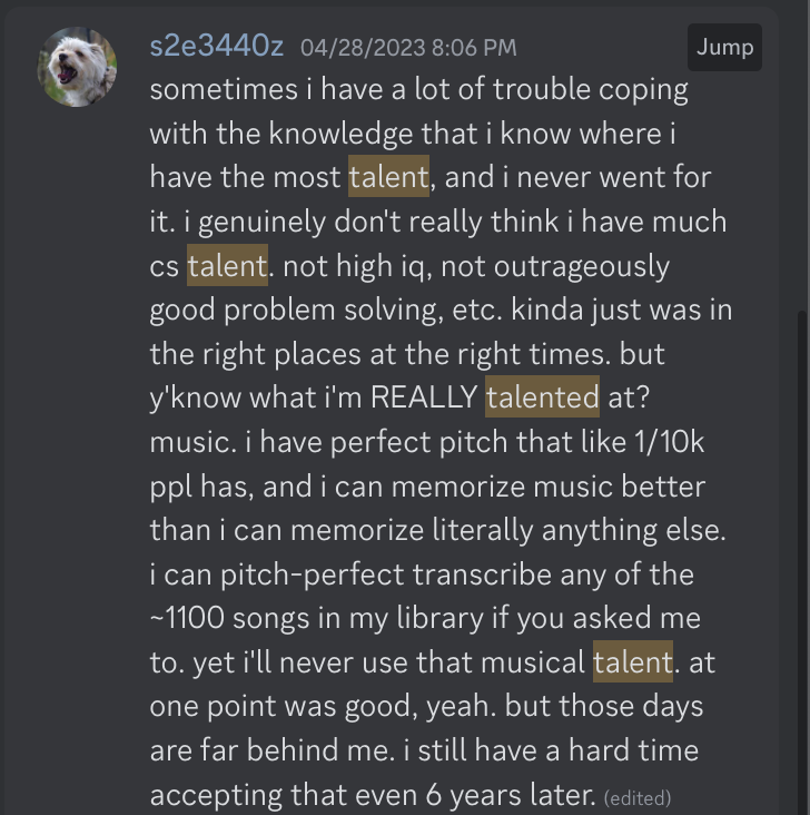 I can’t rationally think this, while also doubting if I’d transition well to anything. Believing this must require believing that “gold shines anywhere” — that I’d be good at anything I put my effort into.